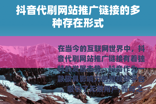 在当今的互联网世界中,抖音代刷网站推广链接有着独特的发展态势,抖音作为一款极具影响力的短视频平台,吸引了无数用户,而与之相关的代刷网站推广链接也在一定程度上悄然兴起。