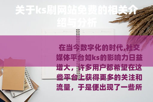 在当今数字化的时代,社交媒体平台如ks的影响力日益增大,许多用户都希望在这些平台上获得更多的关注和流量,于是便出现了一些所谓的ks刷网站免费的现象。