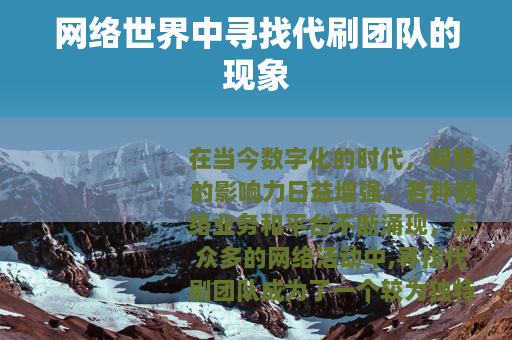 在当今数字化的时代,网络的影响力日益增强,各种网络业务和平台不断涌现,在众多的网络活动中,寻找代刷团队成为了一个较为独特的现象。
