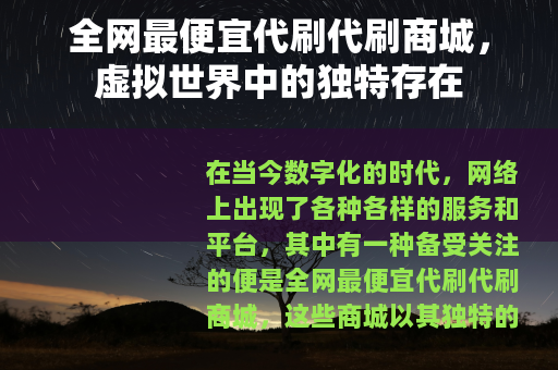 在当今数字化的时代,网络上出现了各种各样的服务和平台,其中有一种备受关注的便是全网最便宜代刷代刷商城,这些商城以其独特的服务模式和极具吸引力的价格,在虚拟世界中占据了一席之地。