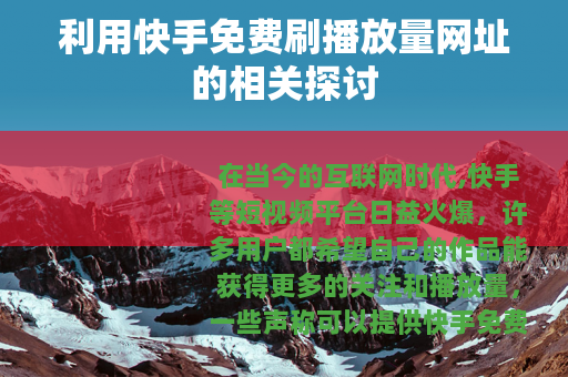 在当今的互联网时代,快手等短视频平台日益火爆,许多用户都希望自己的作品能获得更多的关注和播放量,一些声称可以提供快手免费刷1000播放的网址开始在网络上出现。