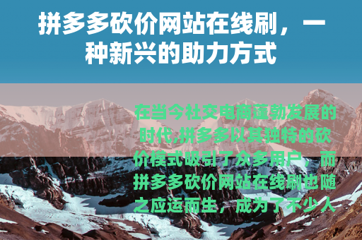 在当今社交电商蓬勃发展的时代,拼多多以其独特的砍价模式吸引了众多用户,而拼多多砍价网站在线刷也随之应运而生,成为了不少人关注的焦点。