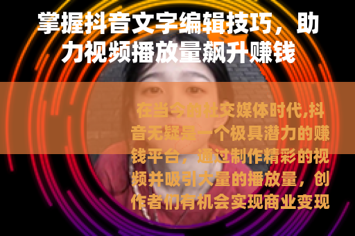 编辑好抖音文字是提高视频播放率并进而实现赚钱的重要环节,通过运用上述技巧,不断优化文字内容和呈现方式,您将能够制作出更具吸引力的抖音视频,吸引更多的用户观看和关注,从而在抖音这个平台上获得更多的机会和收益,希望这些技巧对您有所帮助,祝您在抖音创作的道路上取得成功!