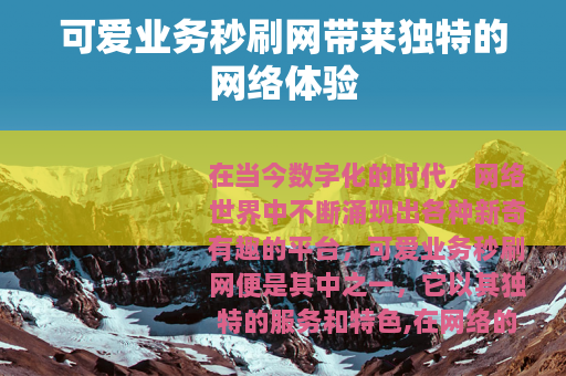 在当今数字化的时代,网络世界中不断涌现出各种新奇有趣的平台,可爱业务秒刷网便是其中之一,它以其独特的服务和特色,在网络的众多角落中占据了一席之地。