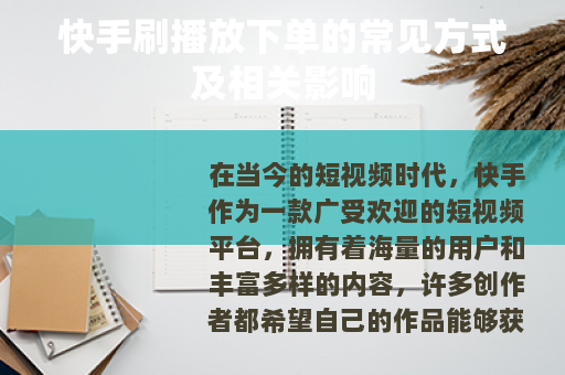 在当今的短视频时代,快手作为一款广受欢迎的短视频平台,拥有着海量的用户和丰富多样的内容,许多创作者都希望自己的作品能够获得更多的播放量,从而提高知名度和影响力,而在这个过程中,快手刷播放下单的现象也逐渐引起了人们的关注。