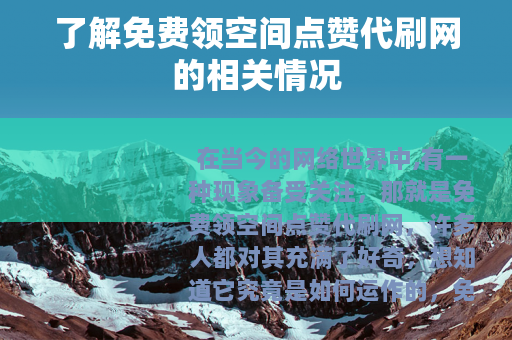 在当今的网络世界中,有一种现象备受关注,那就是免费领空间点赞代刷网,许多人都对其充满了好奇,想知道它究竟是如何运作的。