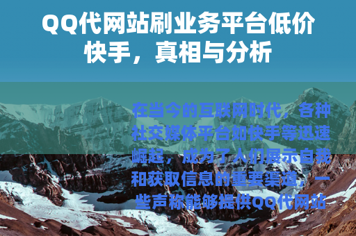 在当今的互联网时代,各种社交媒体平台如快手等迅速崛起,成为了人们展示自我和获取信息的重要渠道,一些声称能够提供QQ代网站刷业务平台低价快手服务的信息也悄然出现,吸引了不少人的关注。