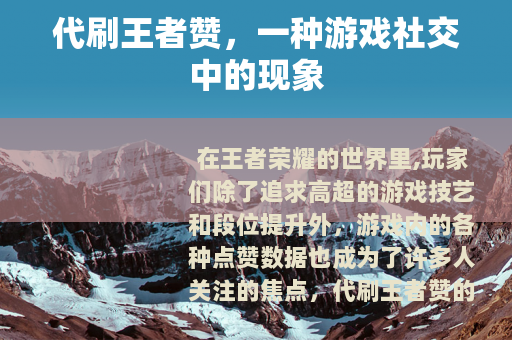 代刷王者赞的出现,正是基于玩家们对高点赞数的渴望,一些玩家希望自己在游戏中的表现能够得到更多的肯定和赞赏,而通过正常的游戏过程积累点赞数可能需要花费大量的时间和精力,代刷王者赞的服务便应运而生,这些代刷服务通常通过各种渠道进行宣传,吸引着那些希望快速提升自己点赞数的玩家。