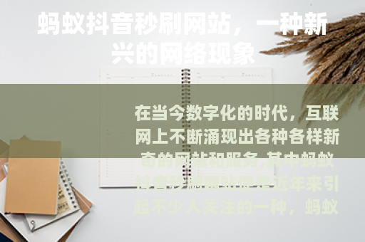在当今数字化的时代,互联网上不断涌现出各种各样新奇的网站和服务,其中蚂蚁抖音秒刷网站便是近年来引起不少人关注的一种。