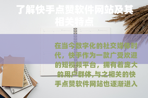 在当今数字化的社交媒体时代,快手作为一款广受欢迎的短视频平台,拥有着庞大的用户群体,与之相关的快手点赞软件网站也逐渐进入了人们的视野。
