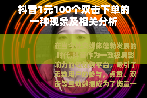 在当今社交媒体蓬勃发展的时代,抖音作为一款极具影响力的短视频平台,吸引了无数用户的参与,点赞、双击等互动数据成为了衡量一个视频受欢迎程度的重要指标之一,而在这个过程中,出现了一种所谓“抖音1元100个双击下单”的情况。