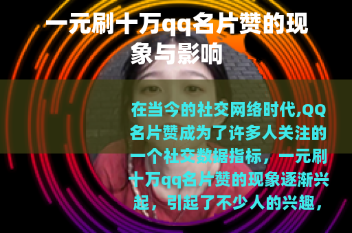 在当今的社交网络时代,QQ名片赞成为了许多人关注的一个社交数据指标,一元刷十万qq名片赞的现象逐渐兴起,引起了不少人的兴趣。