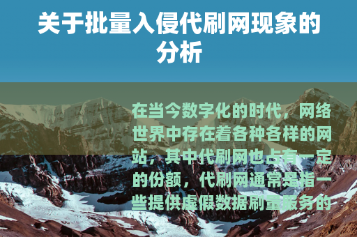 在当今数字化的时代,网络世界中存在着各种各样的网站,其中代刷网也占有一定的份额,代刷网通常是指一些提供虚假数据刷量服务的平台,如刷粉丝、刷点赞、刷流量等,而在这个领域中,出现了一种被称为批量入侵代刷网的现象,值得我们深入探讨。