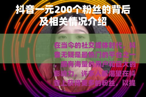 在当今的社交媒体时代,抖音无疑是最热门的平台之一,拥有海量的用户和巨大的影响力,许多人都渴望在抖音上获得更多的粉丝,以提升自己的知名度和影响力,而市场上也出现了诸如“抖音一元200个粉丝”这样的现象。
