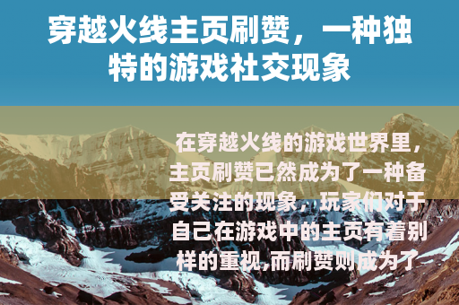 在穿越火线的游戏世界里,主页刷赞已然成为了一种备受关注的现象,玩家们对于自己在游戏中的主页有着别样的重视,而刷赞则成为了提升主页热度和展示个人魅力的一种方式。