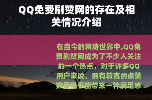 在当今的网络世界中,QQ免费刷赞网成为了不少人关注的一个热点,对于许多QQ用户来说,拥有较高的点赞数量似乎能带来一种满足感和成就感,而QQ免费刷赞网就为他们提供了这样一个看似便捷的途径。