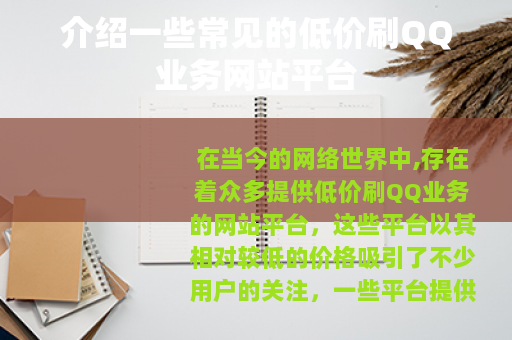 在当今的网络世界中,存在着众多提供低价刷QQ业务的网站平台,这些平台以其相对较低的价格吸引了不少用户的关注。