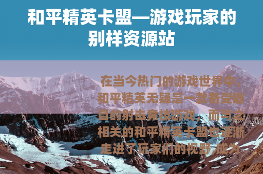 在当今热门的游戏世界中,和平精英无疑是一款备受瞩目的射击竞技游戏,而与之相关的和平精英卡盟也逐渐走进了玩家们的视野,成为了一个独特的存在。