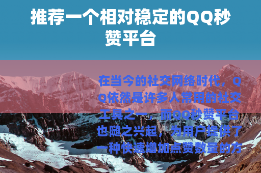 在当今的社交网络时代,QQ依然是许多人常用的社交工具之一,而QQ秒赞平台也随之兴起,为用户提供了一种快速增加点赞数量的方式,就来给大家介绍一个相对稳定的QQ秒赞平台。