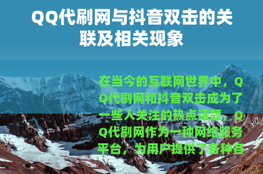 在当今的互联网世界中,QQ代刷网和抖音双击成为了一些人关注的热点话题,QQ代刷网作为一种网络服务平台,为用户提供了各种各样的刷量服务,其中就包括抖音双击的代刷业务。