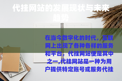 代挂网站作为互联网服务的一种新兴形式,在满足用户需求、创造商业价值等方面具有一定的潜力和发展前景,虽然它在发展过程中面临着一些挑战,但只要能够不断创新和提升自身的技术与服务水平,就有可能在未来的互联网市场中占据一席之地,为用户提供更加便捷、高效的账号代挂服务,同时也为自身的发展赢得更广阔的空间,我们可以期待代挂网站在互联网生态中发挥出更大的作用,与其他互联网服务共同构建一个更加丰富和多元化的数字世界。