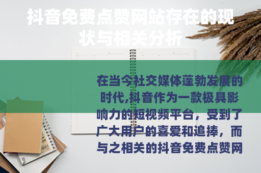在当今社交媒体蓬勃发展的时代,抖音作为一款极具影响力的短视频平台,受到了广大用户的喜爱和追捧,而与之相关的抖音免费点赞网站也在网络上悄然出现,引发了众多用户的关注和讨论。