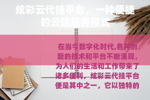 在当今数字化时代,各种创新的技术和平台不断涌现,为人们的生活和工作带来了诸多便利,炫彩云代挂平台便是其中之一,它以独特的服务模式在网络世界中崭露头角。