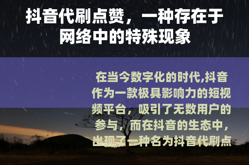 在当今数字化的时代,抖音作为一款极具影响力的短视频平台,吸引了无数用户的参与,而在抖音的生态中,出现了一种名为抖音代刷点赞的现象。