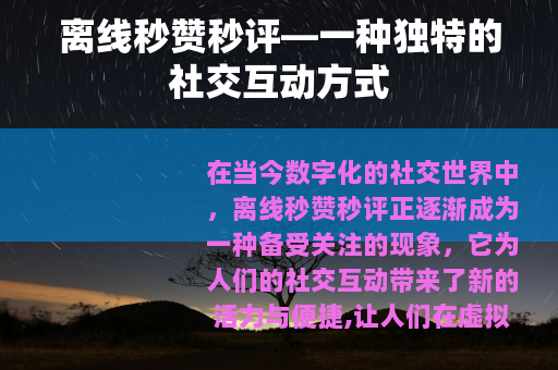 在当今数字化的社交世界中,离线秒赞秒评正逐渐成为一种备受关注的现象,它为人们的社交互动带来了新的活力与便捷,让人们在虚拟的社交网络中能够更加迅速地表达自己的情感与态度。
