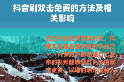 在当今的社交媒体时代,抖音无疑是最受欢迎的平台之一,许多用户都希望自己发布的视频能够获得更多的双击点赞,以增加曝光度和人气,而抖音刷双击免费的话题也因此备受关注。
