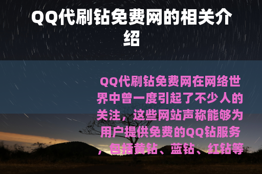 QQ代刷钻免费网在网络世界中曾一度引起了不少人的关注,这些网站声称能够为用户提供免费的QQ钻服务,包括黄钻、蓝钻、红钻等各种类型,吸引了众多QQ用户的目光。