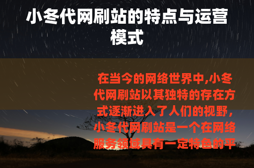在当今的网络世界中,小冬代网刷站以其独特的存在方式逐渐进入了人们的视野,小冬代网刷站是一个在网络服务领域具有一定特色的平台,它为众多用户提供了一系列与网络数据相关的服务。