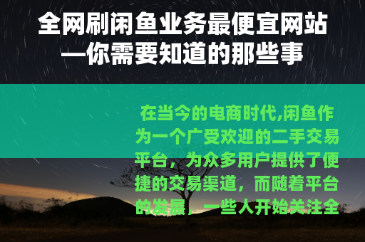 在当今的电商时代,闲鱼作为一个广受欢迎的二手交易平台,为众多用户提供了便捷的交易渠道,而随着平台的发展,一些人开始关注全网刷闲鱼业务最便宜的网站,希望通过这种方式来提升自己在平台上的曝光度和交易成功率。