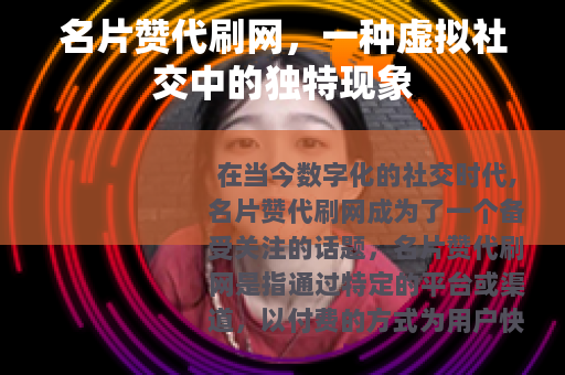 在当今数字化的社交时代,名片赞代刷网成为了一个备受关注的话题,名片赞代刷网是指通过特定的平台或渠道,以付费的方式为用户快速增加社交平台名片上的点赞数量。