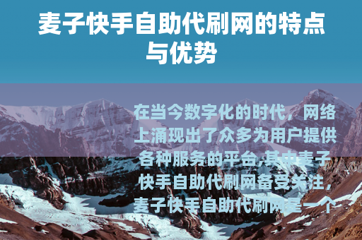 在当今数字化的时代,网络上涌现出了众多为用户提供各种服务的平台,其中麦子快手自助代刷网备受关注。