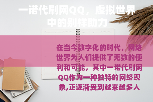 在当今数字化的时代,网络世界为人们提供了无数的便利和可能,其中一诺代刷网QQ作为一种独特的网络现象,正逐渐受到越来越多人的关注。