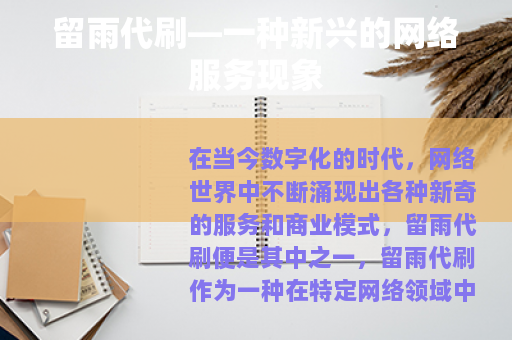 在当今数字化的时代,网络世界中不断涌现出各种新奇的服务和商业模式,留雨代刷便是其中之一,留雨代刷作为一种在特定网络领域中逐渐兴起的服务,为不少用户提供了独特的便利。