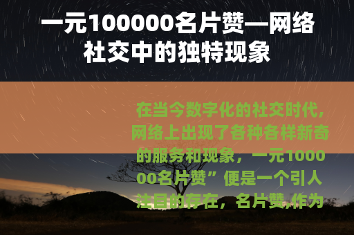 在当今数字化的社交时代,网络上出现了各种各样新奇的服务和现象,一元100000名片赞”便是一个引人注目的存在。