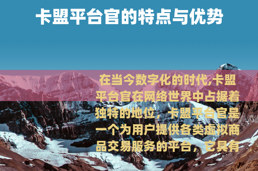 在当今数字化的时代,卡盟平台官在网络世界中占据着独特的地位,卡盟平台官是一个为用户提供各类虚拟商品交易服务的平台,它具有众多值得关注的特点和优势。