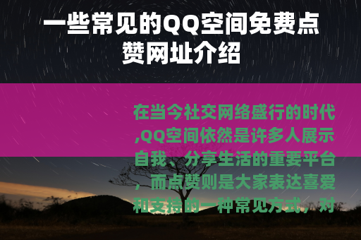 在当今社交网络盛行的时代,QQ空间依然是许多人展示自我、分享生活的重要平台,而点赞则是大家表达喜爱和支持的一种常见方式,对于一些希望自己的QQ空间动态能获得更多点赞的用户来说,寻找免费点赞网址就成了他们关注的事情。
