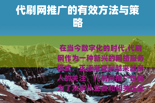 在当今数字化的时代,代刷网作为一种新兴的网络服务模式,正逐渐受到越来越多人的关注,代刷网推广也成为了众多从业者和相关企业所重视的一项重要工作。