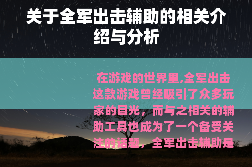 在游戏的世界里,全军出击这款游戏曾经吸引了众多玩家的目光,而与之相关的辅助工具也成为了一个备受关注的话题。