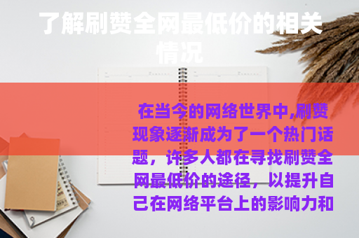 在当今的网络世界中,刷赞现象逐渐成为了一个热门话题,许多人都在寻找刷赞全网最低价的途径,以提升自己在网络平台上的影响力和关注度。