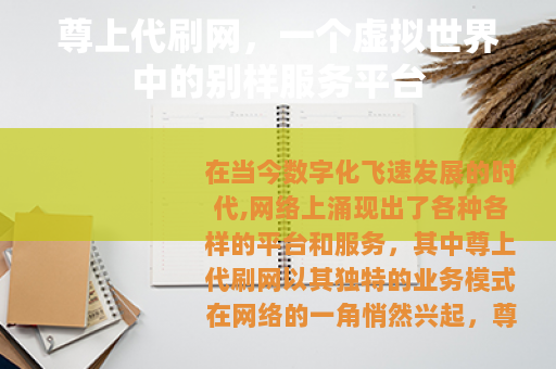 在当今数字化飞速发展的时代,网络上涌现出了各种各样的平台和服务,其中尊上代刷网以其独特的业务模式在网络的一角悄然兴起。