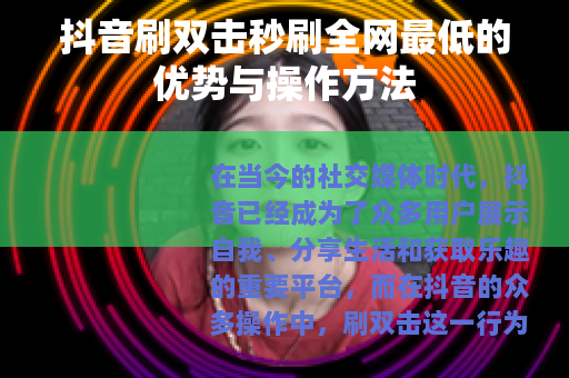 在当今的社交媒体时代,抖音已经成为了众多用户展示自我、分享生活和获取乐趣的重要平台,而在抖音的众多操作中,刷双击这一行为也逐渐受到了不少用户的关注,抖音刷双击秒刷全网最低的服务更是吸引了众多目光。