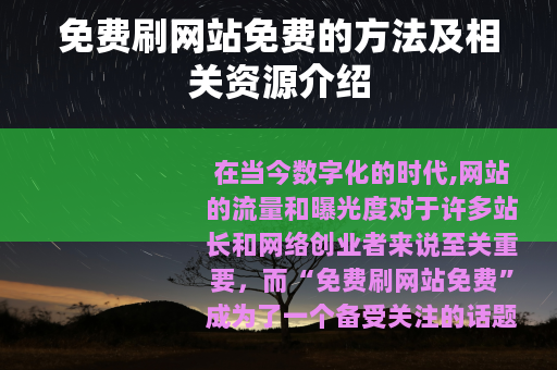 在当今数字化的时代,网站的流量和曝光度对于许多站长和网络创业者来说至关重要,而“免费刷网站免费”成为了一个备受关注的话题,因为它似乎为那些希望提升网站知名度却又不想投入过多资金的人提供了一种可能的途径。