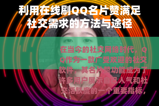 在当今的社交网络时代,QQ作为一款广受欢迎的社交软件,其名片赞功能成为了许多用户展示自己人气和社交活跃度的一个重要指标,而在线刷QQ名片赞也随之兴起,为用户提供了一种快速提升名片赞数量的方式。