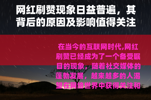 在当今的互联网时代,网红刷赞已经成为了一个备受瞩目的现象,随着社交媒体的蓬勃发展,越来越多的人渴望在网络世界中获得关注和认可,成为网红,而刷赞,似乎成为了他们快速提升知名度和影响力的一种手段。