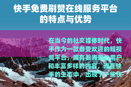 在当今的社交媒体时代,快手作为一款备受欢迎的短视频平台,拥有着海量的用户和丰富多样的内容,而在快手的生态中,出现了一些快手免费刷赞在线服务平台,它们为用户提供了一种独特的方式来提升自己作品的关注度。