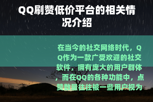 QQ刷赞低价平台在社交网络中有着一定的市场需求和存在价值,但同时也带来了一些问题和挑战,我们应该理性看待这类平台,在利用其优势的同时,也要注意避免其可能带来的负面影响,以维护一个健康、真实的QQ社交环境。